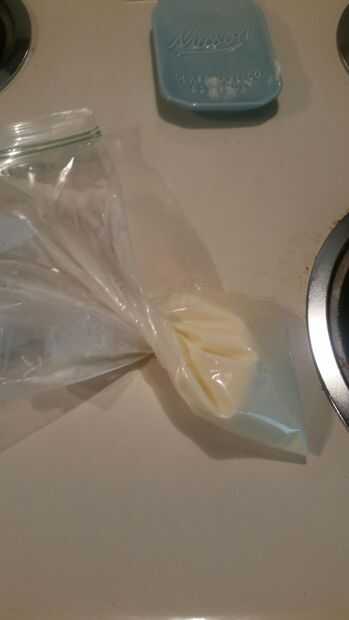 Tome la mezcla de queso crema y vierta en una bolsa zip lock. Cerrar bien y cortar una de las esquinas.