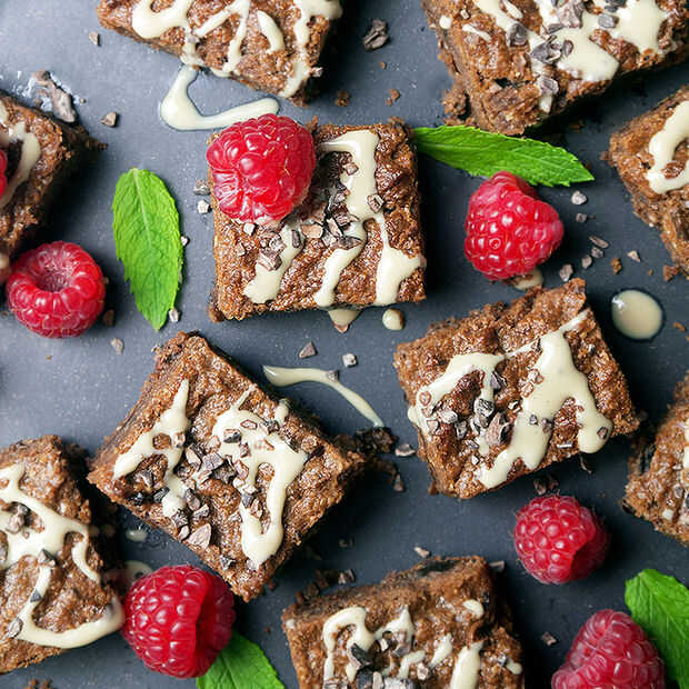 Brownies al chocolate saludables que están llenos de minerales, vitaminas y grasas saludables. El ingrediente principal es el TAHINI (pasta de sésamo) que sé que suena raro, pero realmente funciona bien con chocolate y da los brownies una textura al chocolate.