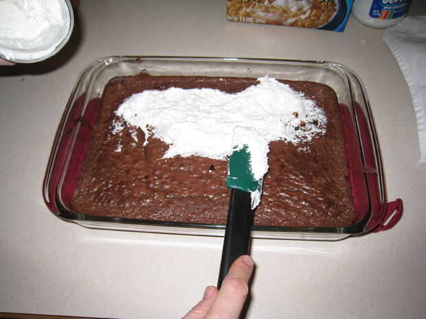 Tomar la crema de malvavisco y comience a esparcir uniformemente.