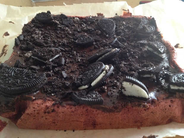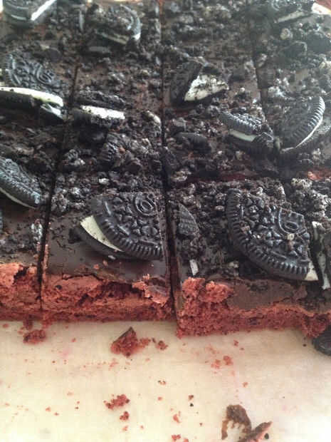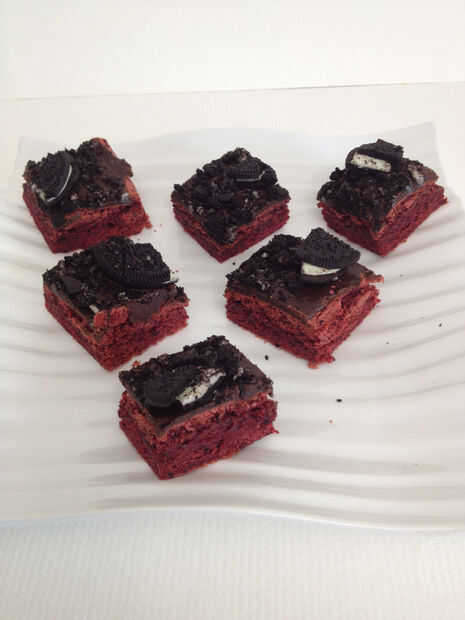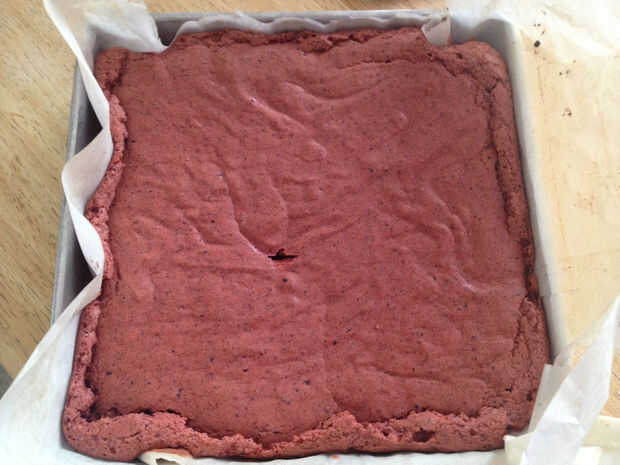 Vierta el ganache en brownies refrescados, distribuidas uniformemente