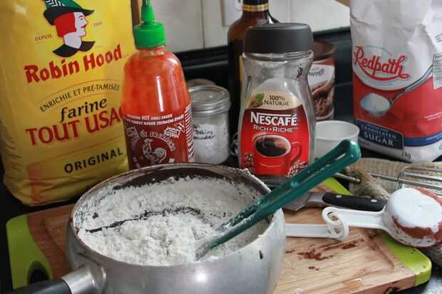 Lindo y suave, estas mordeduras de brownie son fáciles de hacer y seguro que por favor!Rendimiento: hace 20 picaduras (yo usé una lata mini de la Magdalena).Paso 1: ingredientes -1/2 taza de agua hirviendo-1/2 taza de cacao en polvo sin azúcar-1-1/2