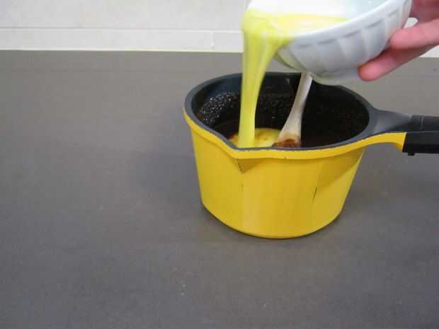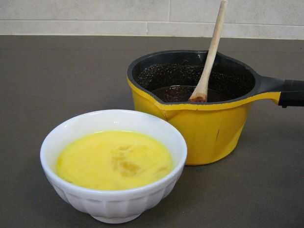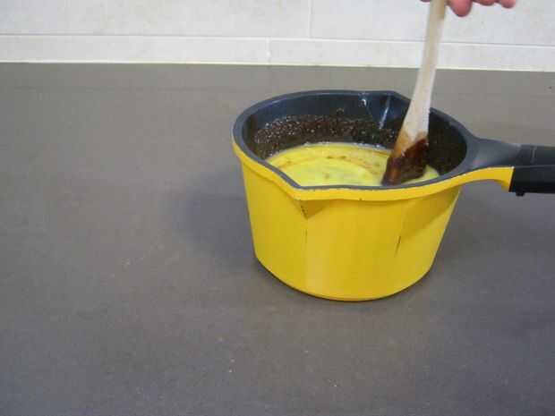 Cuando el chocolate y la mantequilla se derritan totalmente, retirar del fuego y poner sobre la superficie de trabajo.