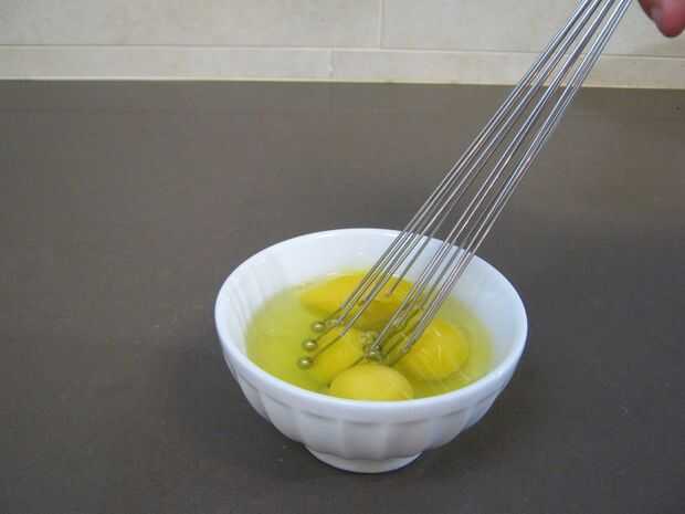 Freno 4 huevos en un bol y mezclarlos juntos, luego agregar a la mezcla y mezcle bien.