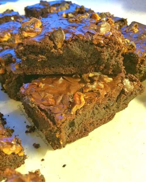 - Deje que se enfríe completamente en la bandeja sobre una rejilla. Usando el excedente de papel, sacar el brownie de pan y cortar en cuadrados.