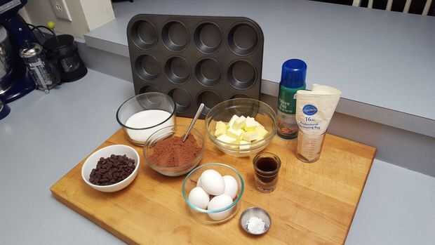 1 recipiente para microondas, 1 bol grande y opcionalmente un 16" tubería de la bolsa, y en nuestro caso un molde de Cupcake, me gusta mis Brownies a todos lados!