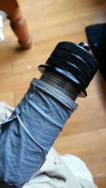 Se necesita:- 2 arandelas de x M26 de origen fuera de ebay. Cinta de pato (pero mejor un clip del Jubileo). Plástico moldeable polimorfo. Taza de café llena de agua caliente.