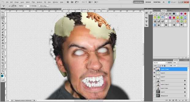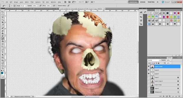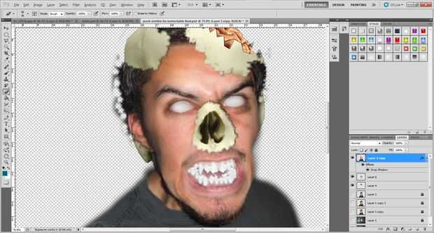 3. como lo hicimos con la piel y el cabello en el paso de Romper el cráneo , borrar alrededor de la frontera de la piel alrededor de la nariz.