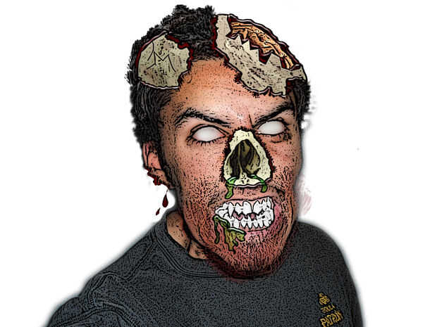 2. para mi final agregué más detalles utilizando las técnicas utilizadas en los pasos anteriores. Agregué más pelo y añadir sangre a la parte posterior del cráneo para que se vea más como una podía ver el interior del cráneo. Moco y la saliva también se agregaron al final.