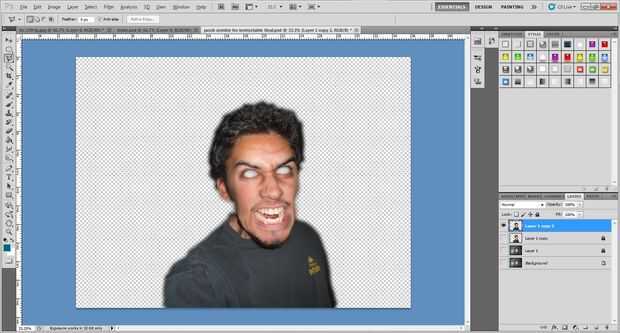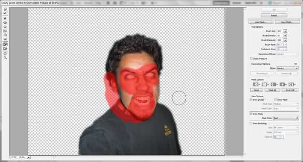 1. en la parte superior de photoshop, haga clic en filtro -> licuar. En el cuadro de herramientas, haga clic en la herramienta de máscara de congelar y pasar los ojos, boca, nariz, cuello, oído y cualquier otra cosa en la zona de las mejillas de temas.