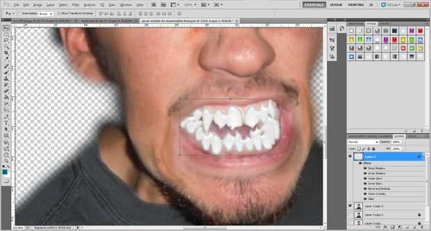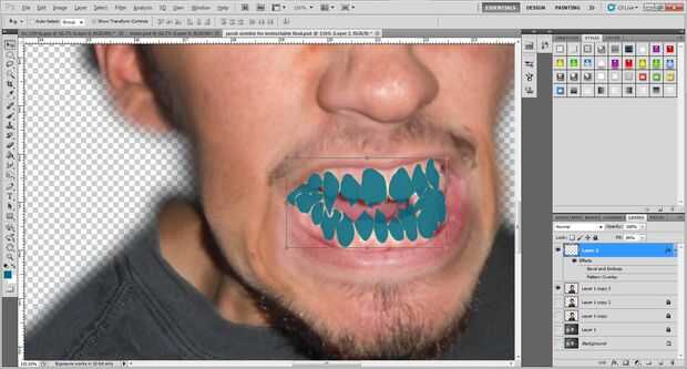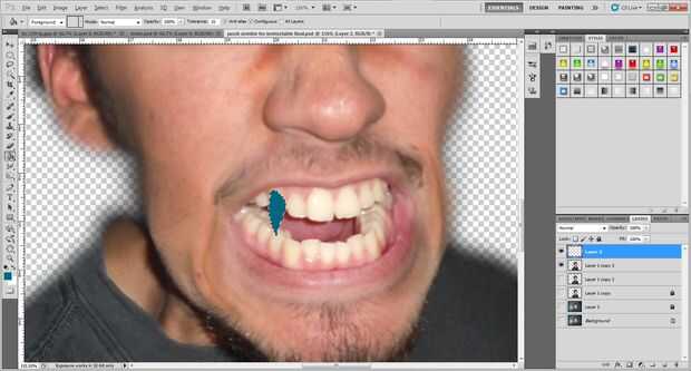 1. crear una nueva capa. Utilice la herramienta lazo para dibujar un diente agudo como forma sobre el diente real de temas.