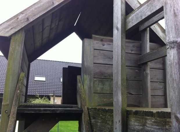 ZAAG de toren een apertura waar de brug makkelijk toegankelijk es. Nos beginnen met het wandelgedeelte. Se reúnen de breedte van de apertura incluso raza de at zaag het hout voor het loopstuk. ZAAG zoveel planken als puja om de afstad tussen de torentjes te vullen. ALS deze gezaagd zijn op gelijke lengte, maak je de basisstructuur.