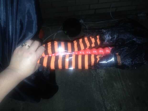 3 poner perchas de alambre juntos abriendo 2 (haciéndolo como hombros y manos conducto cinta el centro añadir una almohada pequeña en el centro (cuerpo como estructura) cosa a la percha de alambre medio, ahora agarra una escoba y conecte al cable suspensiones como si ellos fueron agarrados a la escoba, asegúrese de envolver el alambre alrededor de forma segura , agregue un vestido negro y una capa, ahora Coloque la cabeza de espuma de poliestireno en la parte superior de la espuma de poliestireno, en este momento se pueden añadir unas medias a la almohada (sí de la materia les y ponerlos en la almohada haciendo que las piernas), tirar las piernas hacia atrás y fijar en el w de la escoba un montón de cinta adhesiva!