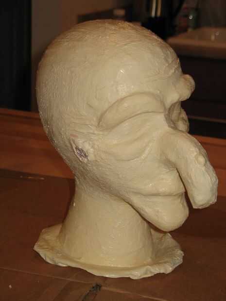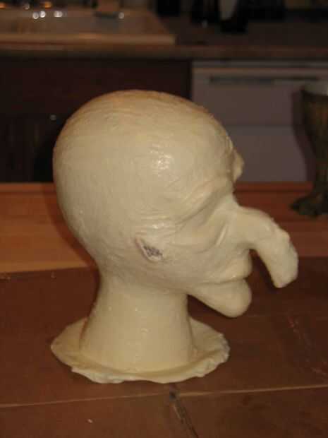 Ahora la diversión comienza de la parte. Empezar a pintar el latex sobre la cabeza seca. Le puse papel de aluminio debajo de la cabeza por lo que sería más fácil sacar la cabeza fuera de mi área de trabajo. Trate de mantener la primera capa bastante delgada por lo que se carro más rápido. Se necesita pintar unos 6 a 8 capas de látex. Asegúrese de que cada capa seque por completo antes de añadir la siguiente capa.