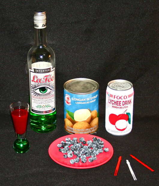 Se reúnen algunos absinthe, longan bayas, jugo de lychee, arándanos y salsa sangrienta fresa y frambuesa.
