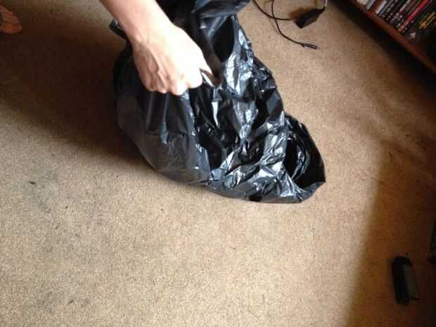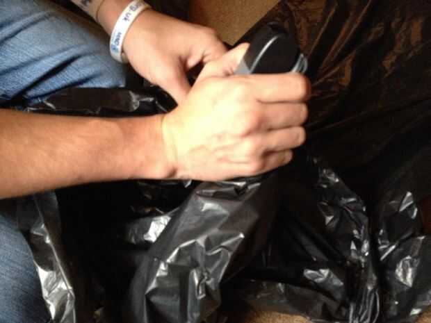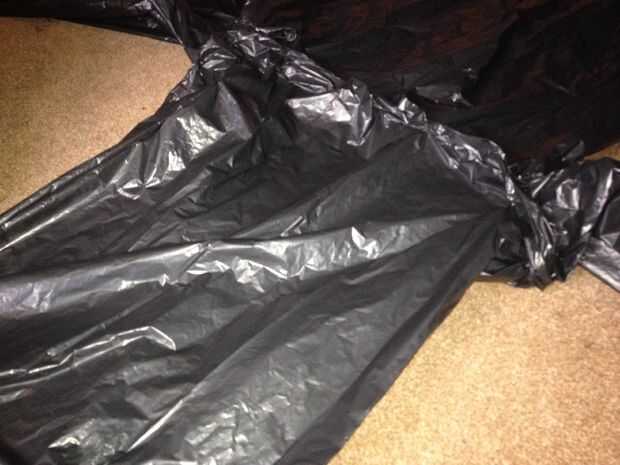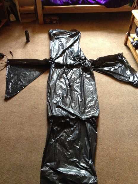 una vez que han atado la campana tome un extremo de la abertura superior y llevarlo hasta la costura que une la campana al cuerpo, agrupar para arriba como vas.