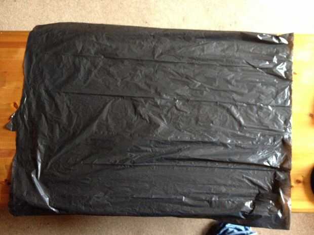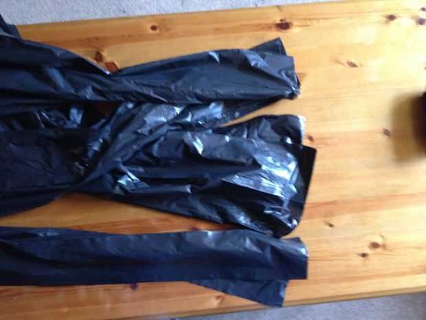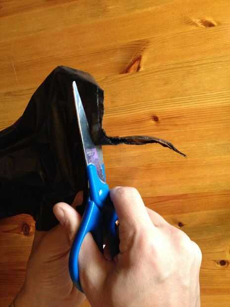 Tomar sus cuatro bolsas negras (3 Si su niño) y cortar los extremos sellados para hacerlos en forma de tubo