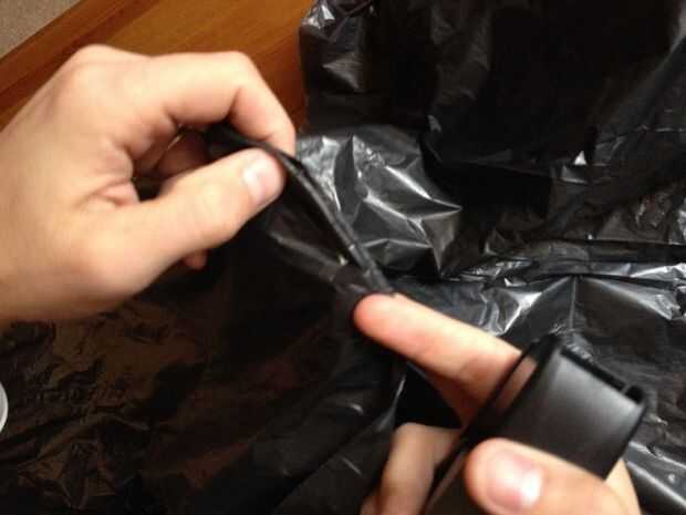 Tome dos de las bolsas restantes y ponen un extremo abierto para abrir el extremo (no importa cual)