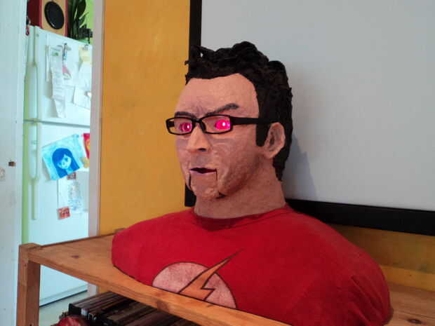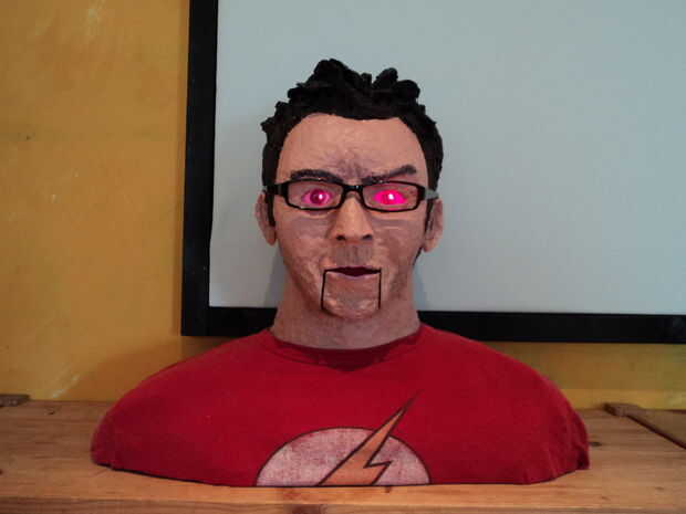 Cuando alguna vez hacer un proyecto como este me cuesta parar, siempre hay una cosa más, creo que debo añadir. Normalmente yo dar un paso atrás, volver a evaluar y decir OK, no meterse con la perfección. No esta vez, todos estuvimos de acuerdo que sería impresionante si mueve la boca, simplemente añadiendo un walkie-talkie o altavoz amplificado en la cavidad de la cabeza podría traer verdaderamente Charlie Sheen a la vida- ganador!