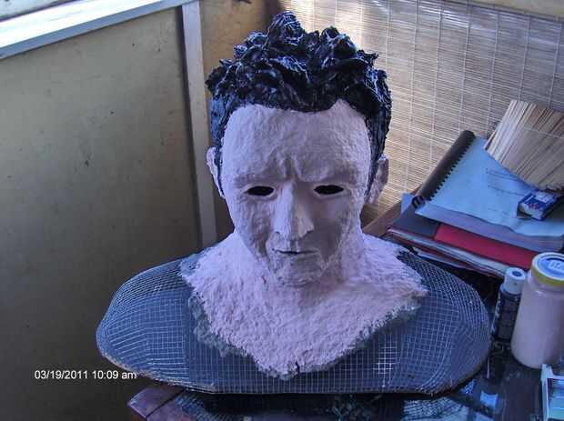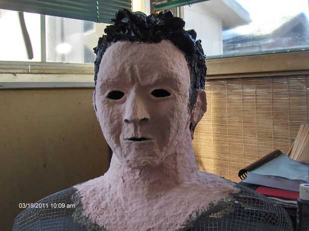 Primero dio la piel una capa base de pintura acrílica que era 5 piezas antiguo crema 1 parte algodón de azúcar rosa. Casi parecía una versión demoníaca de datos de Star Trek la nueva generación.
