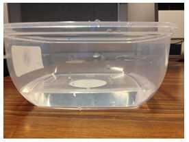 Llene su Tupperware con agua para que el corcho puede flotar. De este recipiente de Tupperware, lo llenamos aproximadamente 1/4 de lo completo.
