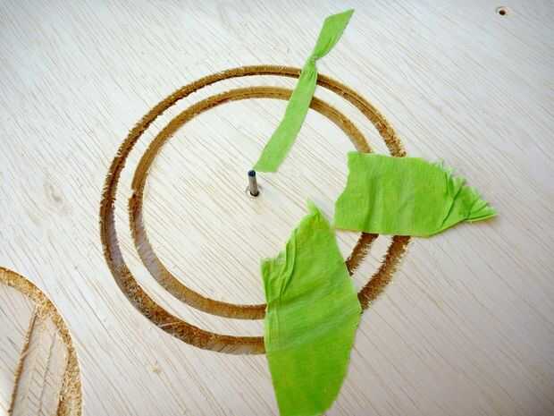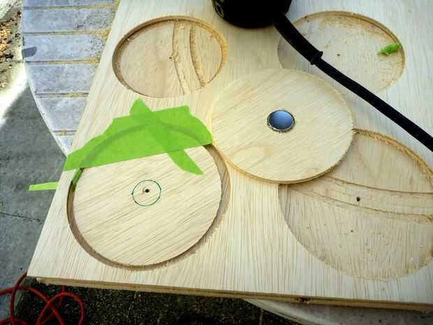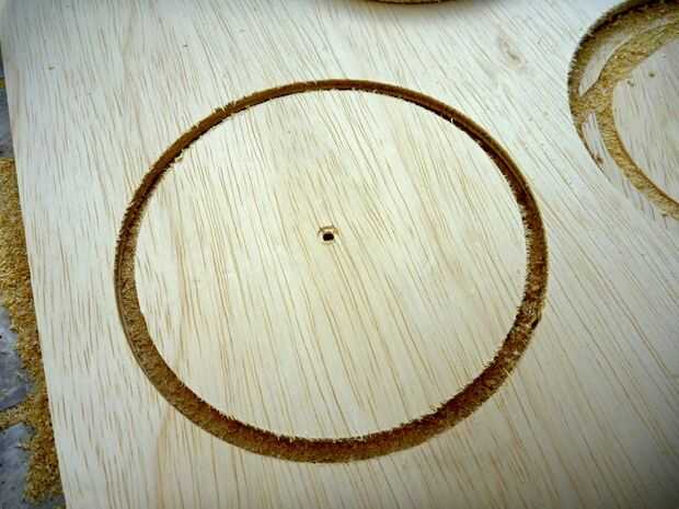 Se cortó un círculo base de la más fina madera de 6mm y luego un anillo fue creado para convertirse en el borde de la montaña. El anillo es un poco más difícil de la ruta y luego su hermano mayor fue con la plantilla de círculo porque no tiene suficiente fricción para sujetarlo yo el router pasa. Una pequeña cinta hace el truco para que puede completar el corte.