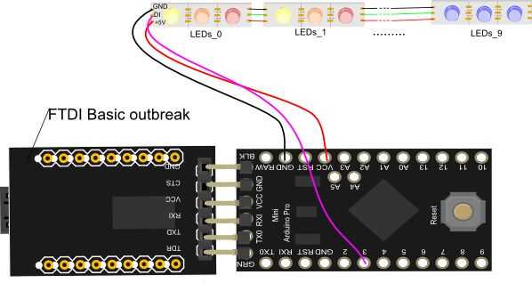 SectionsCombine tres luces en un grupo, a partir de la primera luz del LED se conecta a la placa de control. El número de serie será LEDs_0, LEDs_1, LEDs_2, LEDs_3,..., LEDs_9.