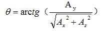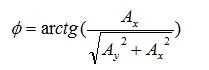 El ángulo de la echada de una partícula cargada es el ángulo entre el vector de la velocidad de la partícula y el campo magnético local. Ángulo del rodillo se mide respecto a la horizontal. Medir el componente gravitacional de aceleración del eje x, eje y y eje z. Fórmula 2 y calcular el grado de ángulo del rodillo y de inclinación.