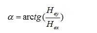 una, que podemos conseguir el grado de α, una vez que tenemos los parámetros de eje x y eje y y la función arctan. También podemos obtener la dirección del polo norte magnético.