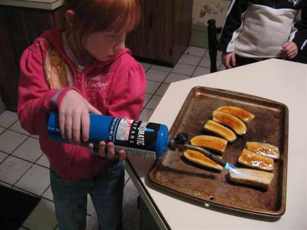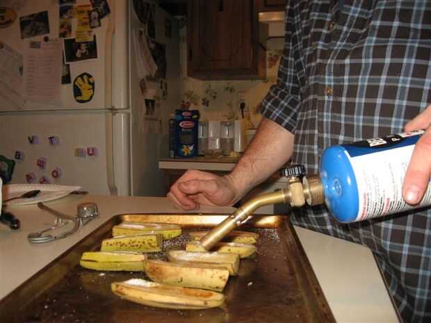 Encienda el soplete y aplique la llama al azúcar. Sólo la punta de la llama debe tocar el azúcar. Comenzará a derretir, luego de la burbuja y dar vuelta a marrón. Mantenga el soplete moviéndose para no hacerlo más y quemar el azúcar.