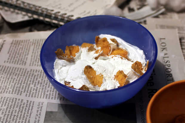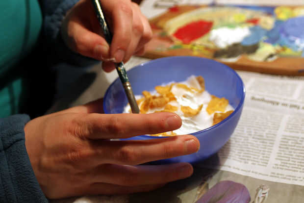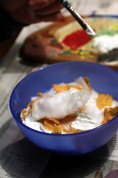 Tenga en cuenta que si desea agregar una cuchara, es más fácil hacerlo antes de la pintura y los copos de maíz se han secado.