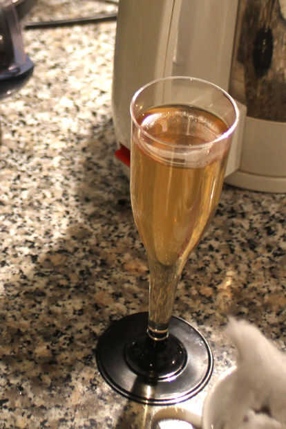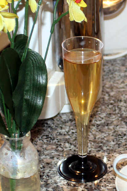 El champagne hizo suavemente teñido una pequeña porción de gelatina con el café, luego verter en una copa de champán de plástico para fijar.