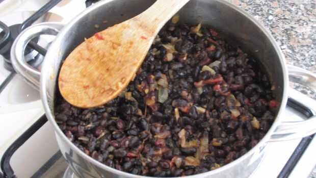 Añadir las habas, ahora drenadas, a la olla, añadir sal y pimienta (tanto como quieras), dejarlo reposar un poco, para los alimentos obtener el sabor)