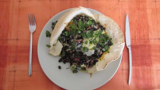 Su comida está lista, si usted quiere servir, use un cuchillo desde la parte superior para cortar la tortilla en la parte inferior, poner la espátula de cocina u otras herramientas de cocina entre la bandeja y la tortilla, tire hacia arriba y colocar una placa.