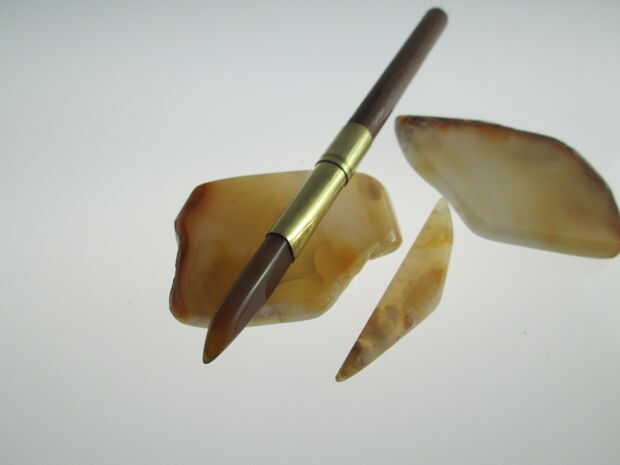 Una foto de algunos de mis diferentes bruñidores de ágata de tamaño y forma.