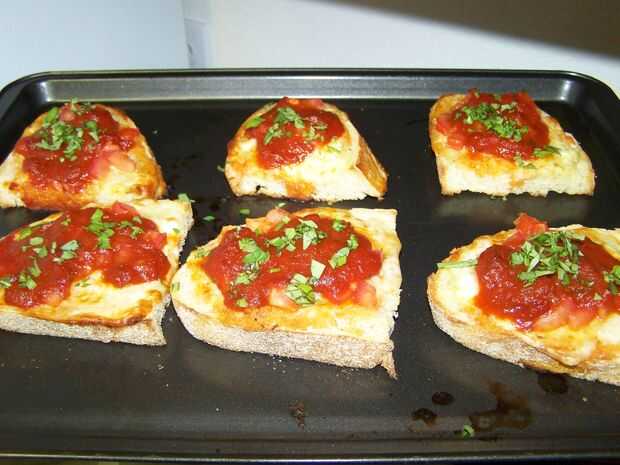 se trata de un giro en el original pan de bruschetta. Son deliciosos, nutritivos y una opción consciente de brezo. Hacen un excelente aperitivo o acompañamiento a una comida.Tiempo de preparación es alrededor de 15 minutos.Tiempo de cocción es de 30-