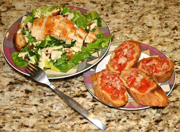 porque vivo en una familia italiana, disfruto muchos alimentos italianos como pizza, espaguetis y albóndigas y cosas como bruschetta.  Esta es una de las recetas de brushetta favorito de mi mamá que ella hace a menudo, y es un gran snack o aperitivo