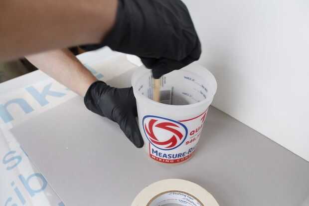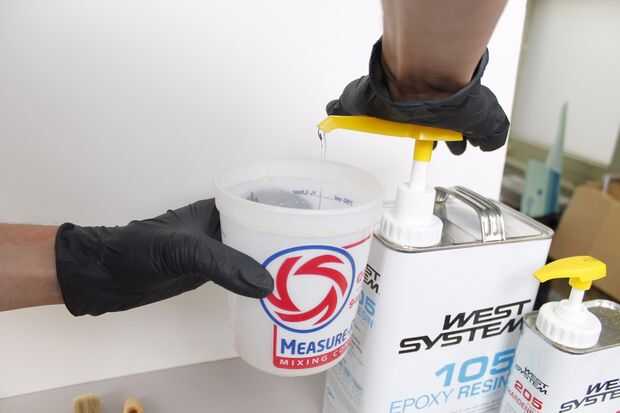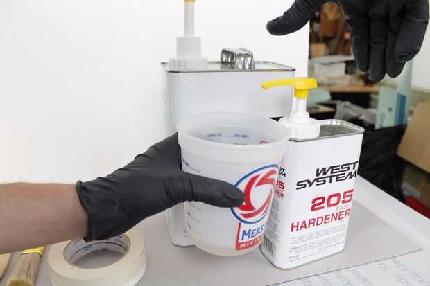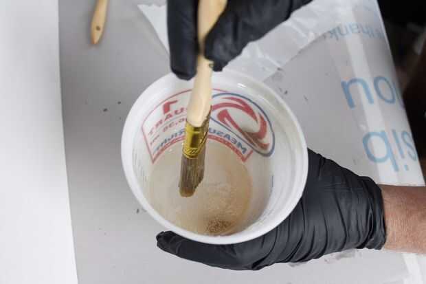 Comenzar mezclando un poco de epoxi. Te sugiero mezclar la resina con el cepillo que va a hacer en un gancho.
