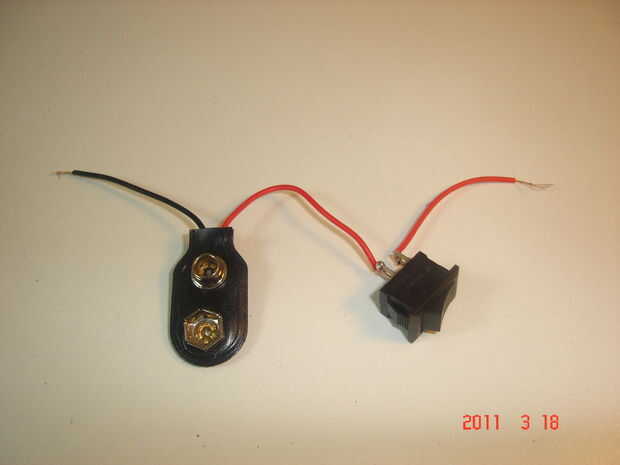 Soldar el cable rojo del clip de la batería a la otra pata del interruptor (otra vez, usted puede torcerlo si la pierna tiene un agujero, pero es mejor darle un apretón más fuerte).