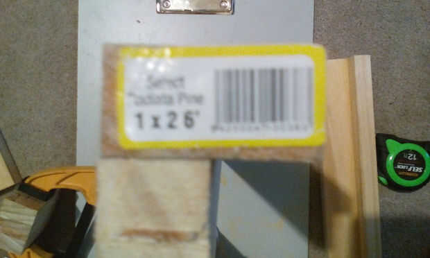 1. (2) 1'' x 2'' x 6' Seleccione pino (PRECAUCIÓN: no sean tamaño real que sostiene la tienda.) Vine a descubrir en medio de este proyecto que las dimensiones reales son 3/4 '' x1.5 "x 6'. 1 "x 2" x 8'' podría ser un poco más vale la pena. Se pueden utilizar tiras de 1 x 2 va es más barato por unos cuantos dólares, pero otra vez recomiendo que medir.