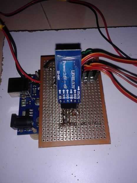 1) Conecte el módulo azul HC05 a la serie de software de la placa Arduino en los pernos 2, 4.