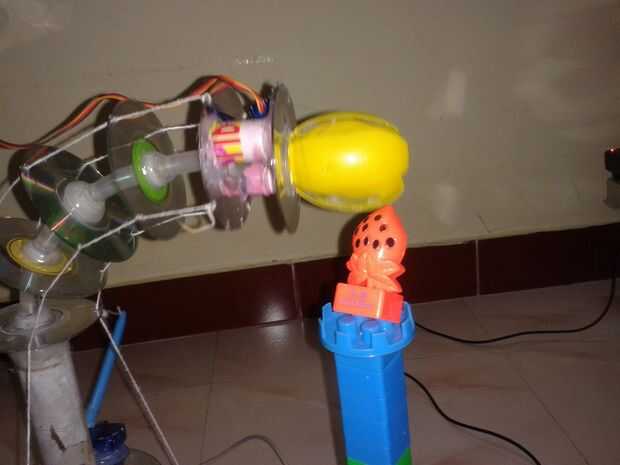 2) ahora el brazo tronco levantar el objeto desde un extremo y gire hacia el otro extremo y poner el objeto en la cesta. Se adjunta programa con esto.