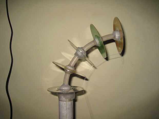 3) pasar la cadena a través del orificio de cuatro cds restantes hacia el agujero en la tapa de CD.