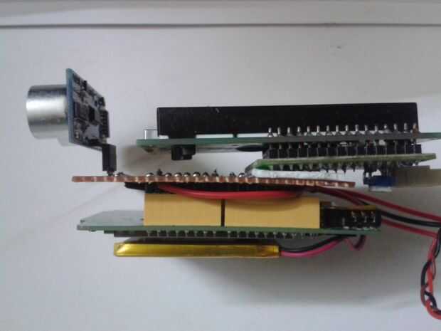 1) stick la batería en la parte inferior del enlace es un adhesivo de doble cara de board.using.