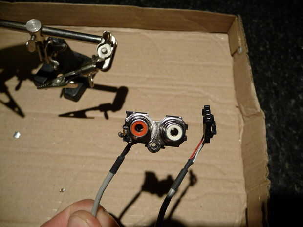 Con su audio cable obviamente un extremo se conecta a la unidad de CD-Rom las otras necesidades para conectar a las tomas phono que han separado de la placa principal de la visión de BT de la caja (ver fotos). Generalmente los cables de exterior son audio izquierda y derecha con las dos media los ser los cables de tierra.
