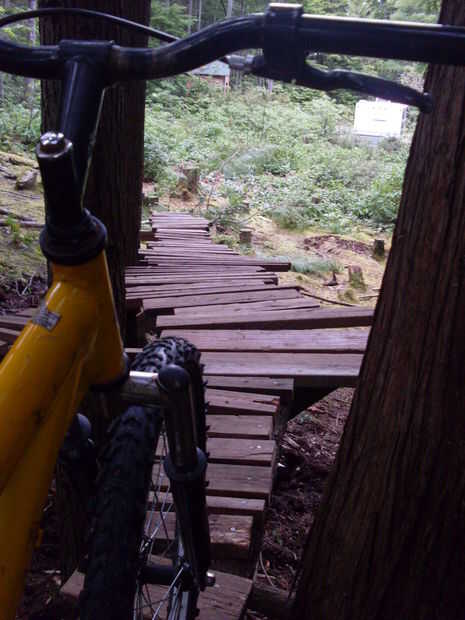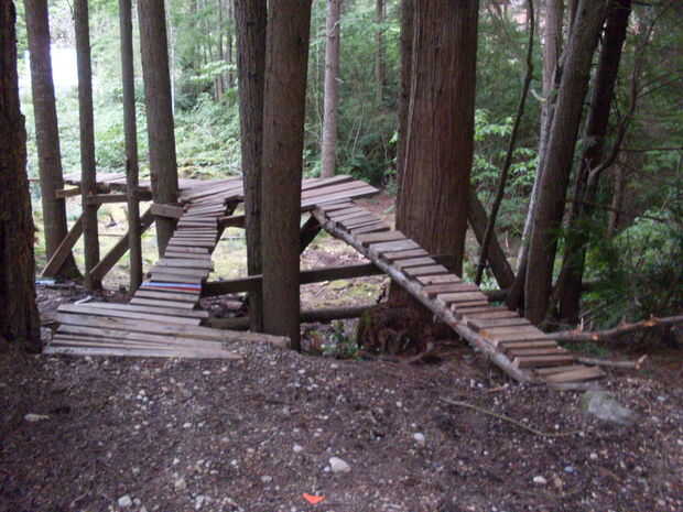 Ahora estás listo para diseñar algunas terrazas. Utilicé restos de madera para esto. Realmente depende de cómo estrecha quiere su puente. Sólo asegúrese de que hacer las tablas un poco más largas alrededor de las vueltas para obtener suficiente área para encender.
