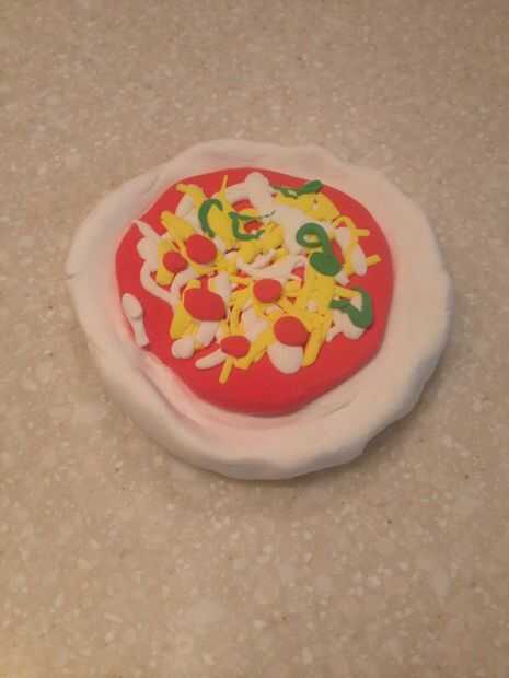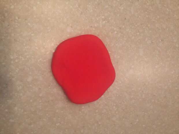 Para la salsa, estirar un disco rojo un poco más pequeño que la corteza. Una vez más, puedes mezclar en otro color para obtener una salsa de mejor aspecto. Sin embargo, no preocupa demasiado igual que mucho de esto cubrirá con sus ingredientes.