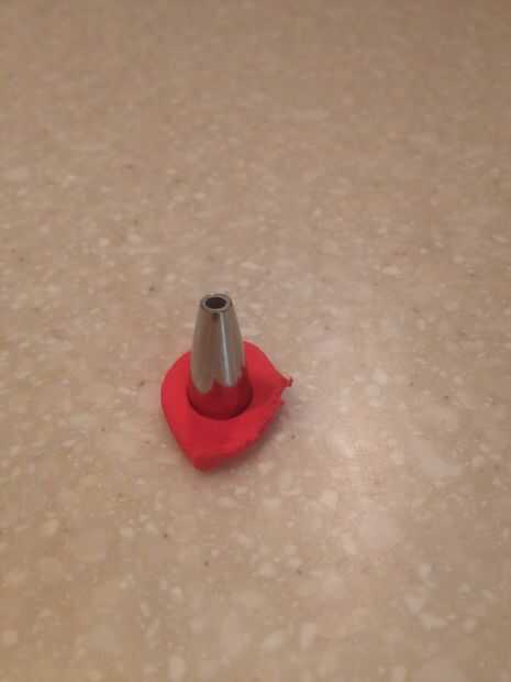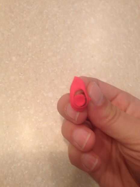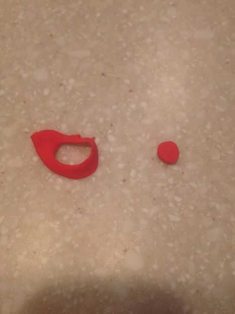 A continuación tenemos el pepperoni. Usé un tornillo de punta para hacer más fácil esta parte. Rodando otra pequeño disco rojo, cortar círculos de pepperoni con la punta del lápiz. Retirar el exceso y expulsar el peperoni de la punta del lápiz. Puede salir bien, o tal vez necesite volar a través de la punta para conseguir suelto.