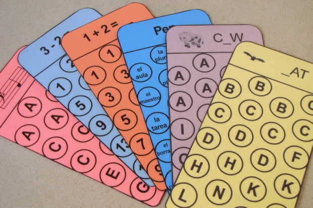 La cosa fresca sobre este dispositivo de flashcard de envoltura de burbujas es que se puede utilizar para casi cualquier tema! Ya he creado muchos matemáticas tarjetas, tarjetas españolas, tarjetas de la música y aún tarjetas de ortografía. Funciona bien para todas las edades y es fácil de usar, resistente y super divertido! Adjunto algunas plantillas y no dude en utilizar estos o hacer tus propias tarjetas. El tamaño de estas tarjetas es 3,75" por 7" de grande, por lo que fácilmente caben dos en una sola hoja de papel rígido. En las plantillas se dará cuenta de que dejé la pregunta en blanco así que usted puede agregar sus propios problemas. También no te olvides de poner la respuesta en la parte posterior de las tarjetas. Al crear un mazo de veinte tarjetas, asegúrese de que cada respuesta corresponde a una burbuja de diferentes. Por haciendo esto un niño puede pop una de las burbujas de cada tarjeta y luego revise su respuesta en la parte posterior del dispositivo. Al final de la cubierta, se hacer estallar todas las burbujas, y puede cambiar hacia fuera el abrigo de burbuja para una nueva pieza. Realmente es muy divertido de aprendizaje con un niño de cualquier edad. ¡¡¡Que te diviertas!!!