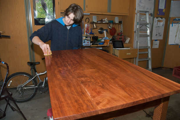 Normalmente no trabajo con materiales reclamados, pero recientemente un cliente le preguntó si podía hacer un escritorio de estilo moderno de un trozo de suelo de la bolera que adquirió en Craigslist. Mucho para mi sorpresa, el suelo de la bolera era