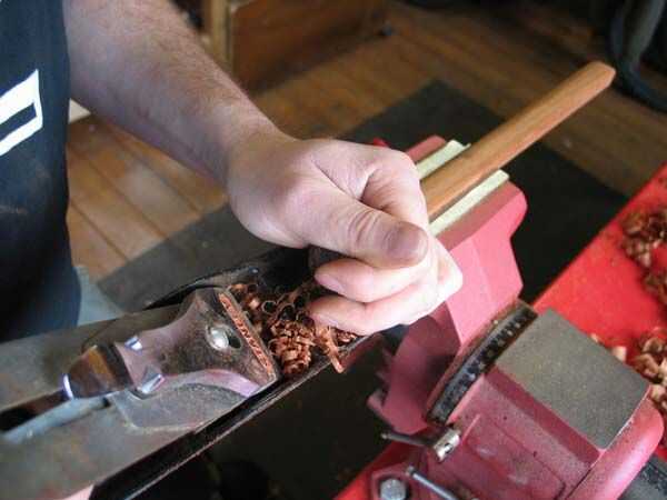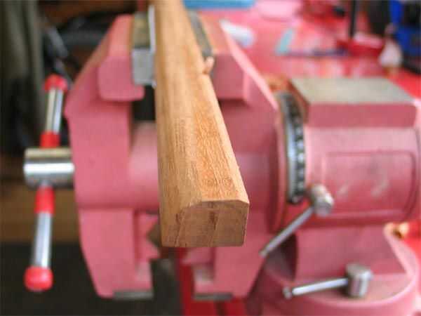 Para los soportes delanteros y traseros un pedazo de madera era mano cepillada con una curva para que coincida con la forma de las piezas laterales. Una persona sensata habría comprado, prestado o robado un router para éste! Después de toda la madera estaba teñida y encerada.